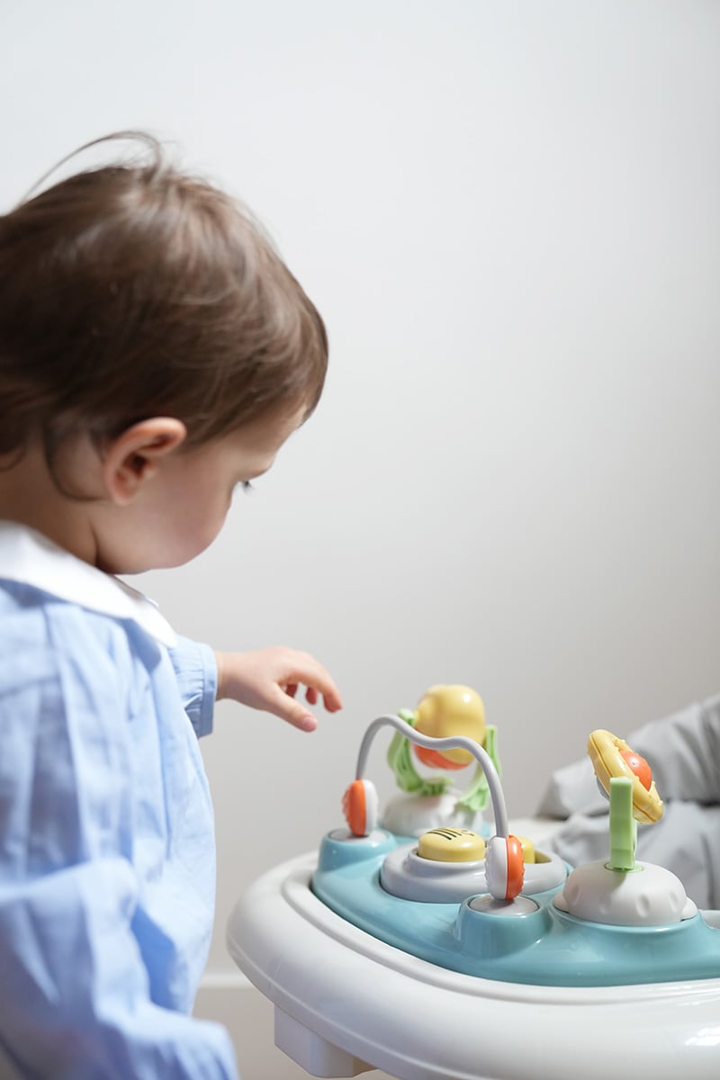 • La base du trotteur, qui fait le tour de bébé lorsqu’il est assis, doit être assez large pour protéger l’enfant au cas où il se cogne. En effet, bébé ne maîtrise pas encore très bien ses gestes et pourrait être pris d’un élan trop énergique.